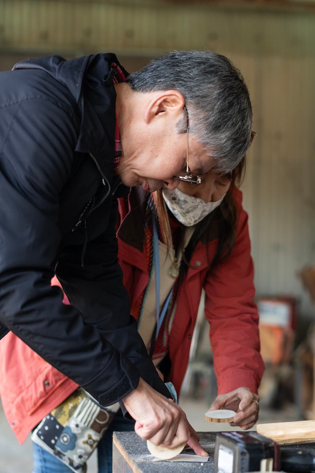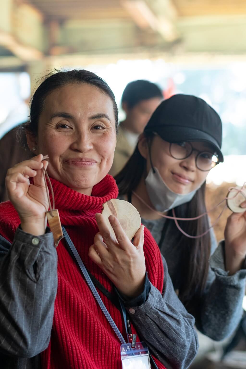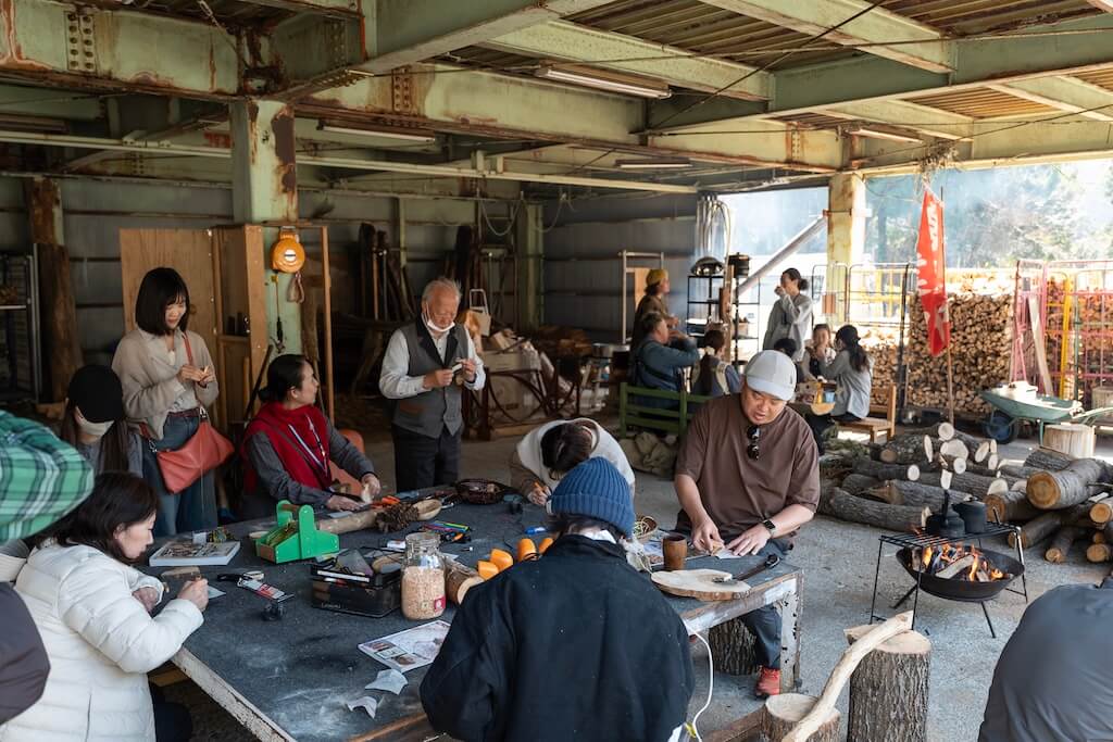 子供の名前を彫った木のチャームをつくる夫婦や、自分だけの作品づくりに没頭する人まで。