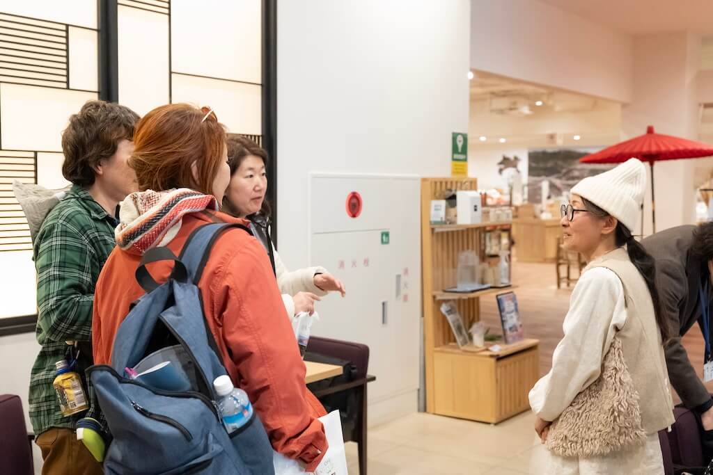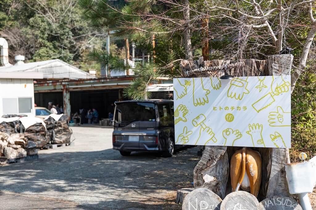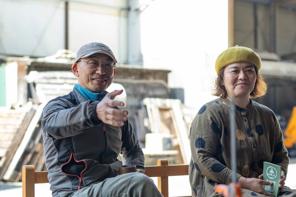 里山の自然と人をつなぐ「NPO法人仂」を訪問。代表の根本秀嗣(ひでつぐ)さんと、「ちまき屋 山笑ふ」の伊藤友美さんが、寄ならではのアクティビティを用意して待っていてくれました。