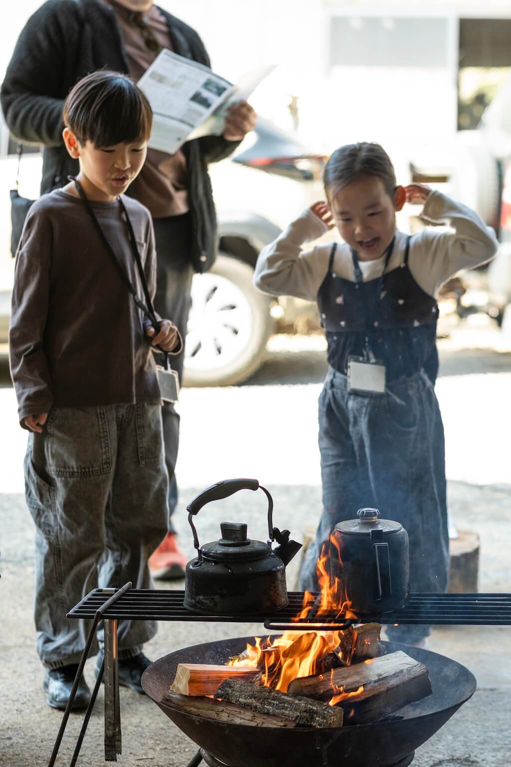 秘密基地のような工場で薪割り、焚き火、木工体験と、参加者それぞれが興味をもったことにチャレンジ!