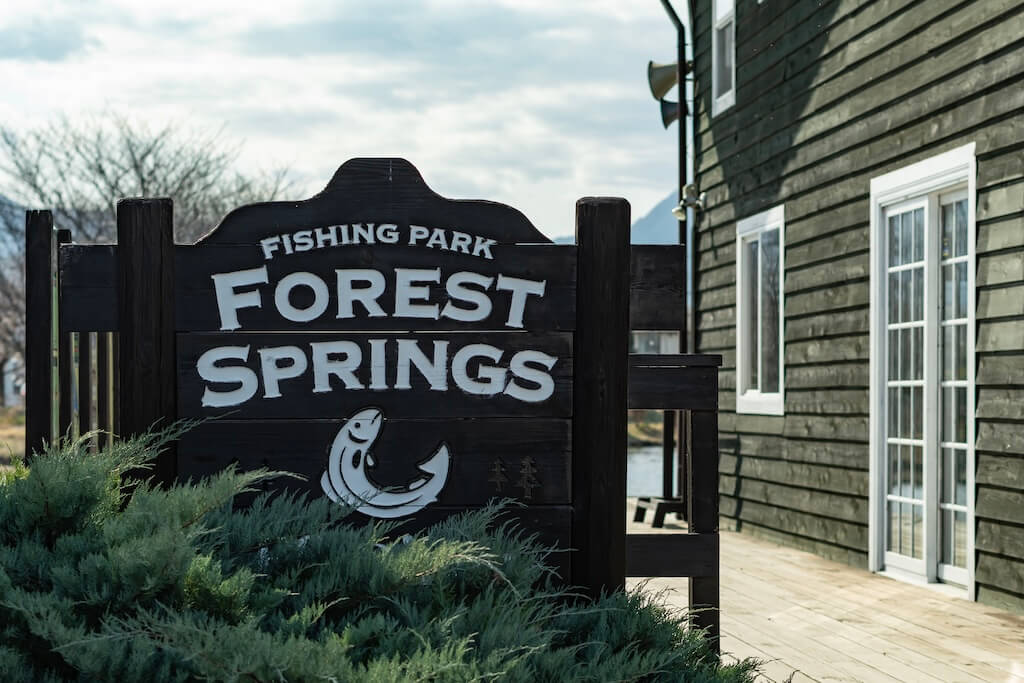 水の恵みは、お米やお酒だけにとどまりません。昼食は、自然に囲まれた開成町の釣り堀「開成水辺フォレストスプリングス」へ。