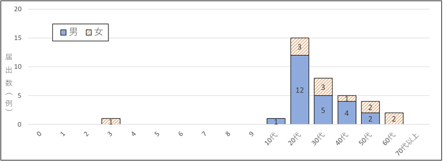 2.年齢別性別の届出数(神奈川県、2026年第1週~第16週) n=36