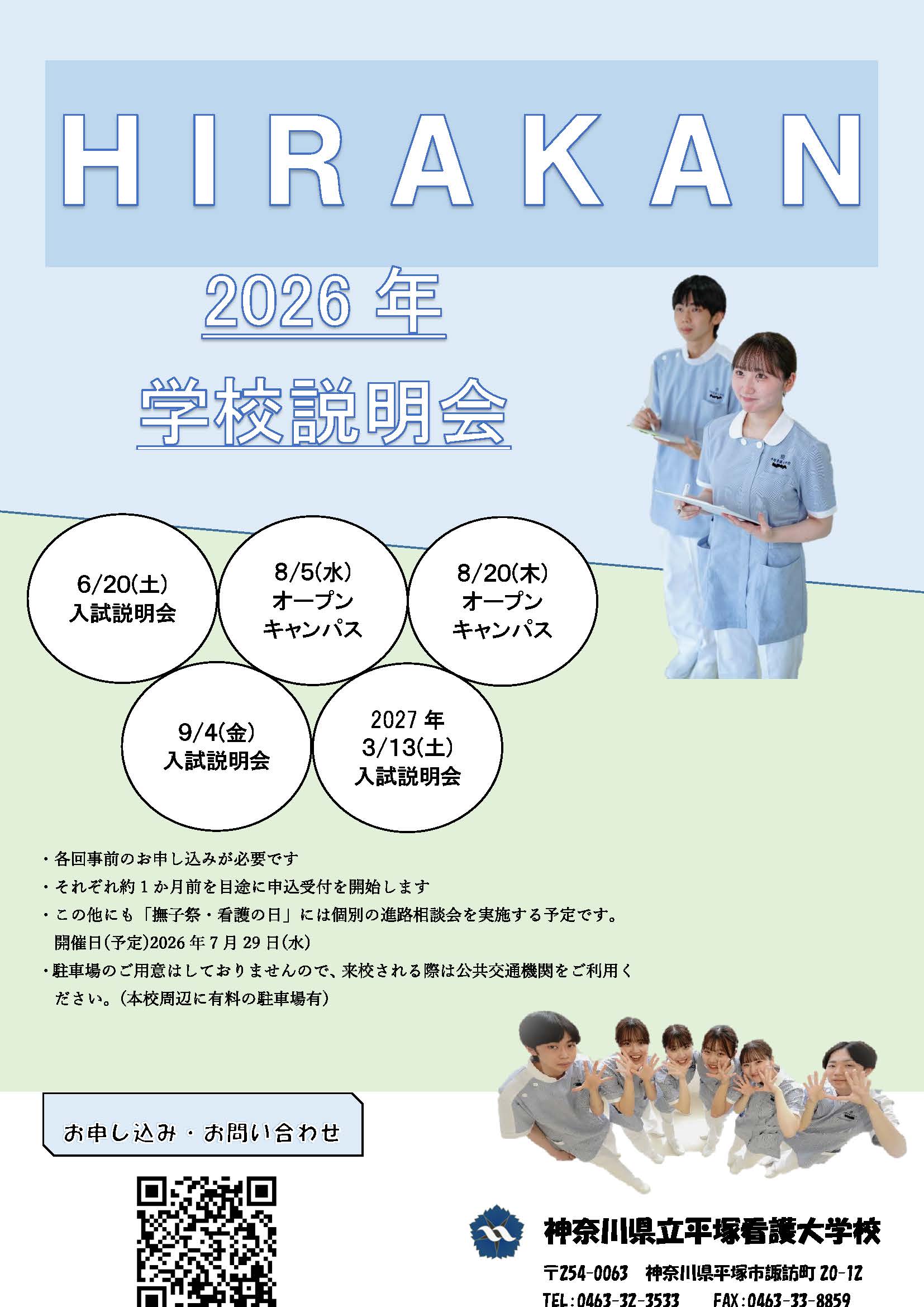 ホーム > 教育・文化・スポーツ > 教育 > 専門教育・大学 > 神奈川県立平塚看護大学校 > 学校説明会