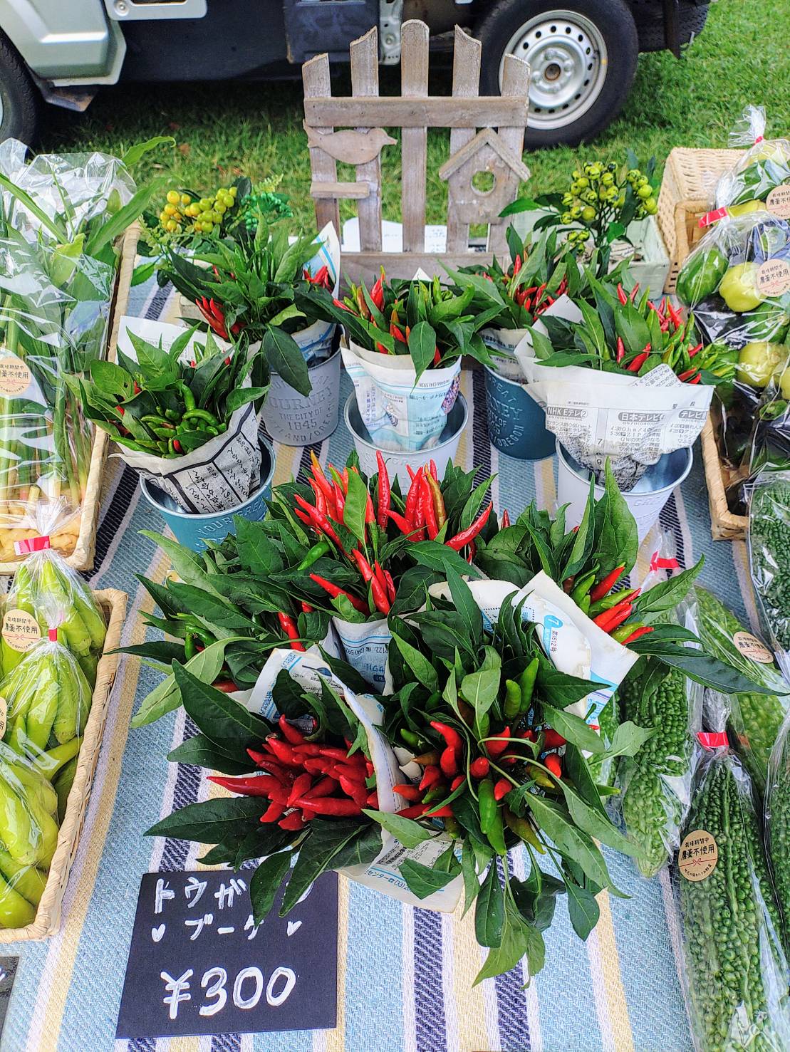 きゅうり、ゴーヤ、ササゲ、トウモロコシ、落花生、里芋、人参、カブ、レタスなど、多品目