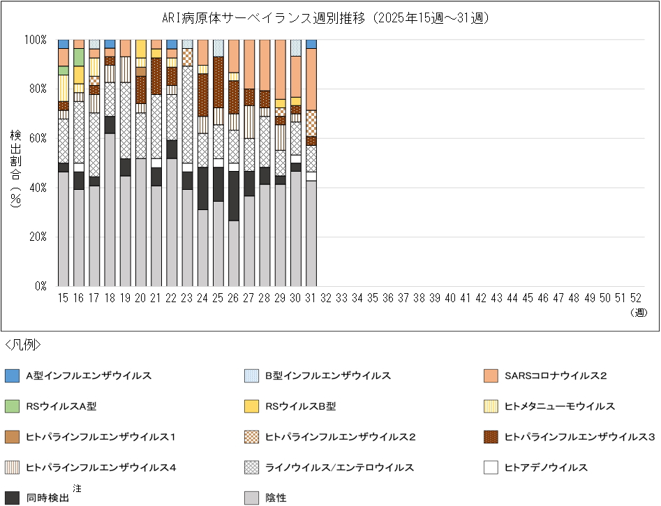 (2)検出結果の週別推移(2025年15週~31週検体採取分)