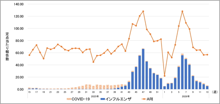[1] 週別・定点当たり報告数の状況(神奈川県、2025年15週~2026年13週)