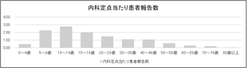 内科定点医療機関からの報告は、10~14歳が最多でした。