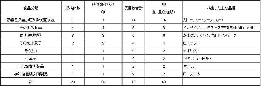 令和6年度 加工食品のアレルゲン物質(卵)の検査結果
