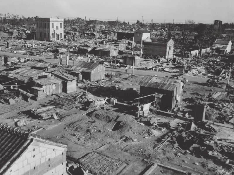 川崎市役所付近の焼け跡(現在の平和通り) ※川崎市平和館所蔵