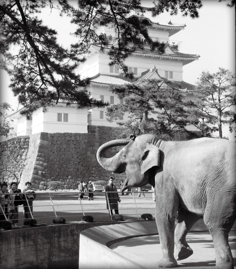 小田原城址公園にゾウがいた時代がありました。インドゾウのウメ子は、昭和25(1950)年の「小田原こども文化博覧会」の開催に合わせ、推定3歳の時にやってきました。平成21(2009)年、当時、国内最高齢の推定62歳で息を引き取るまで、小田原動物園のシンボルとして、多くの人に親しまれました。ウメ子のいた同動物園は令和5(2023)年に閉園しました。